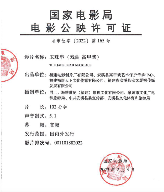 出 品:福建电影制片厂有限公司、安溪县高甲戏艺术保护传承中心、福建福影天下文化传媒有限公司、福建省安溪县安文影视传媒发展有限公司