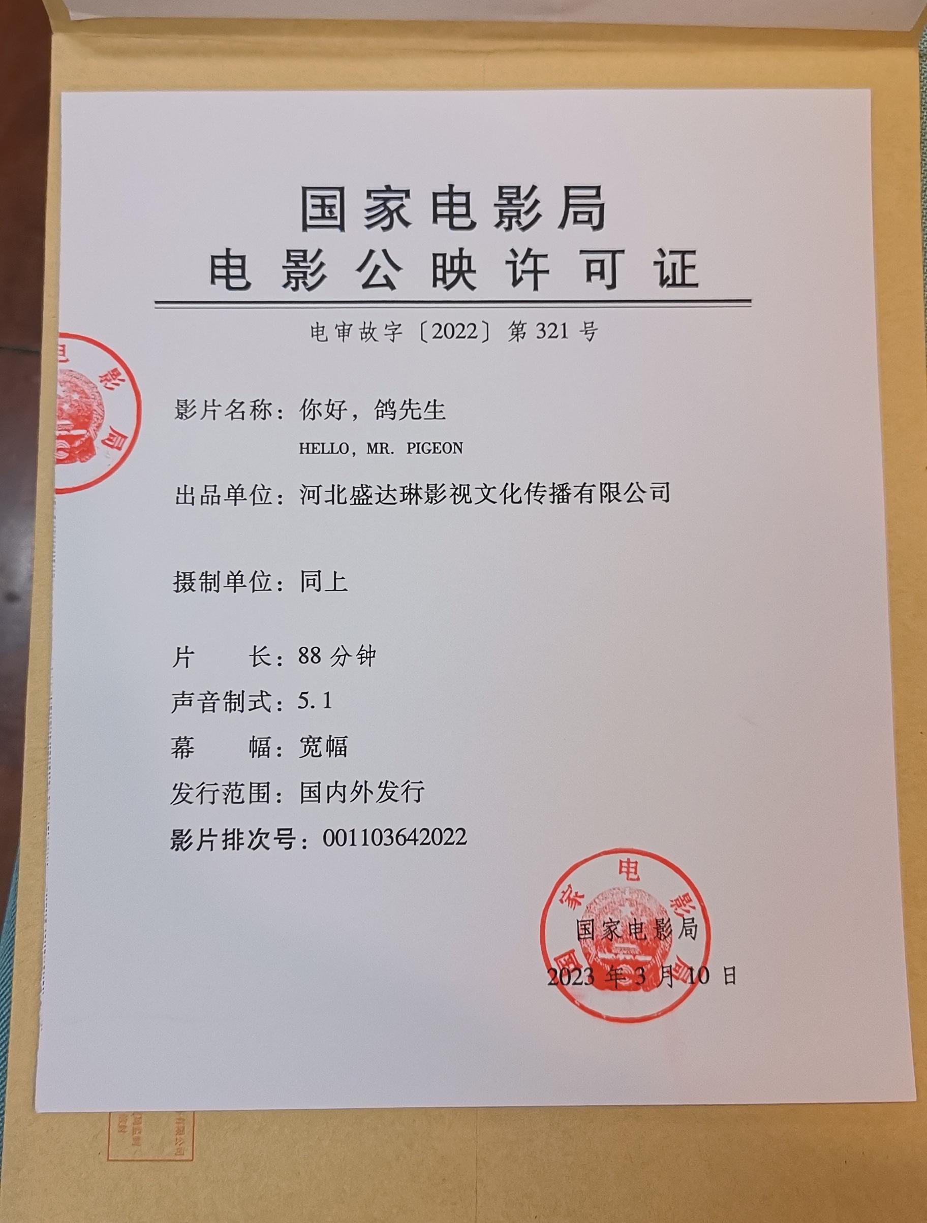发行通知 » 《你好,鸽先生》发行通知