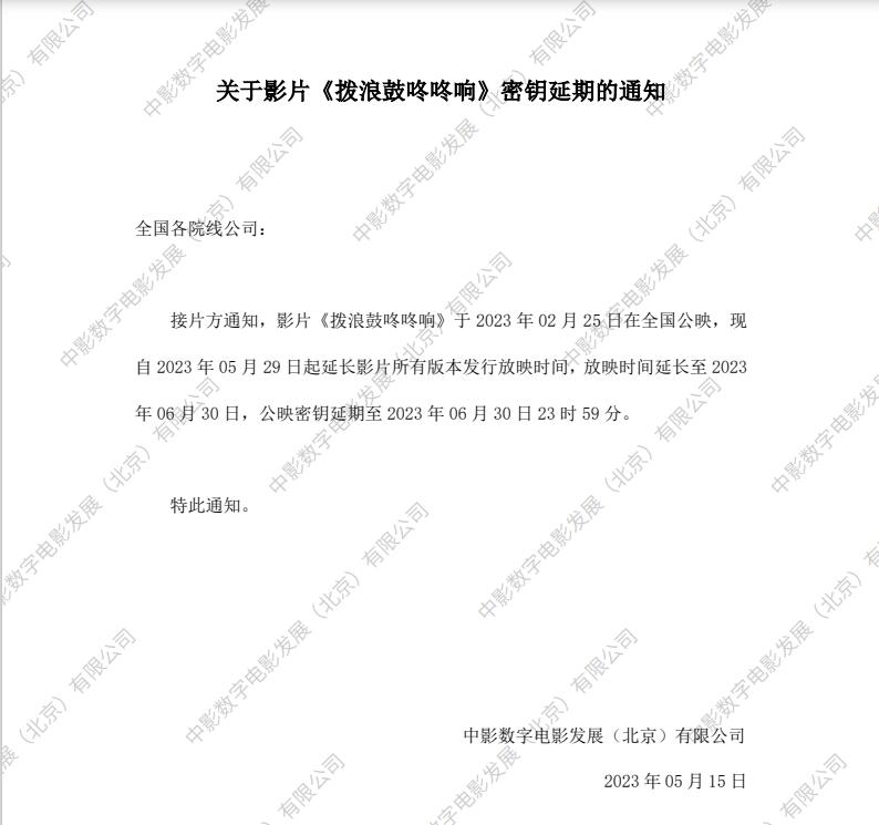 《拨浪鼓咚咚响》第三十二次密钥延期的通知