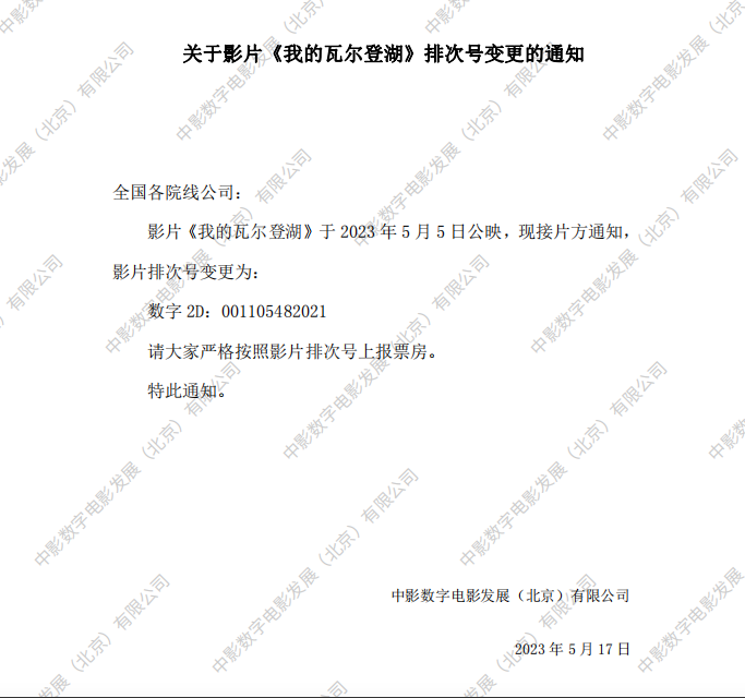 发行通知 » 《我的瓦尔登湖》排次号变更的通知