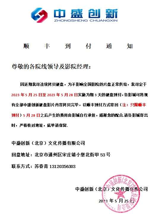发行通知 » 中盛创新《关于顺丰到付的通知》