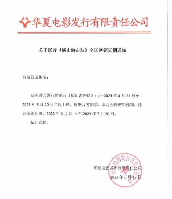 关于影片《横山游击队》全国密钥延期通知