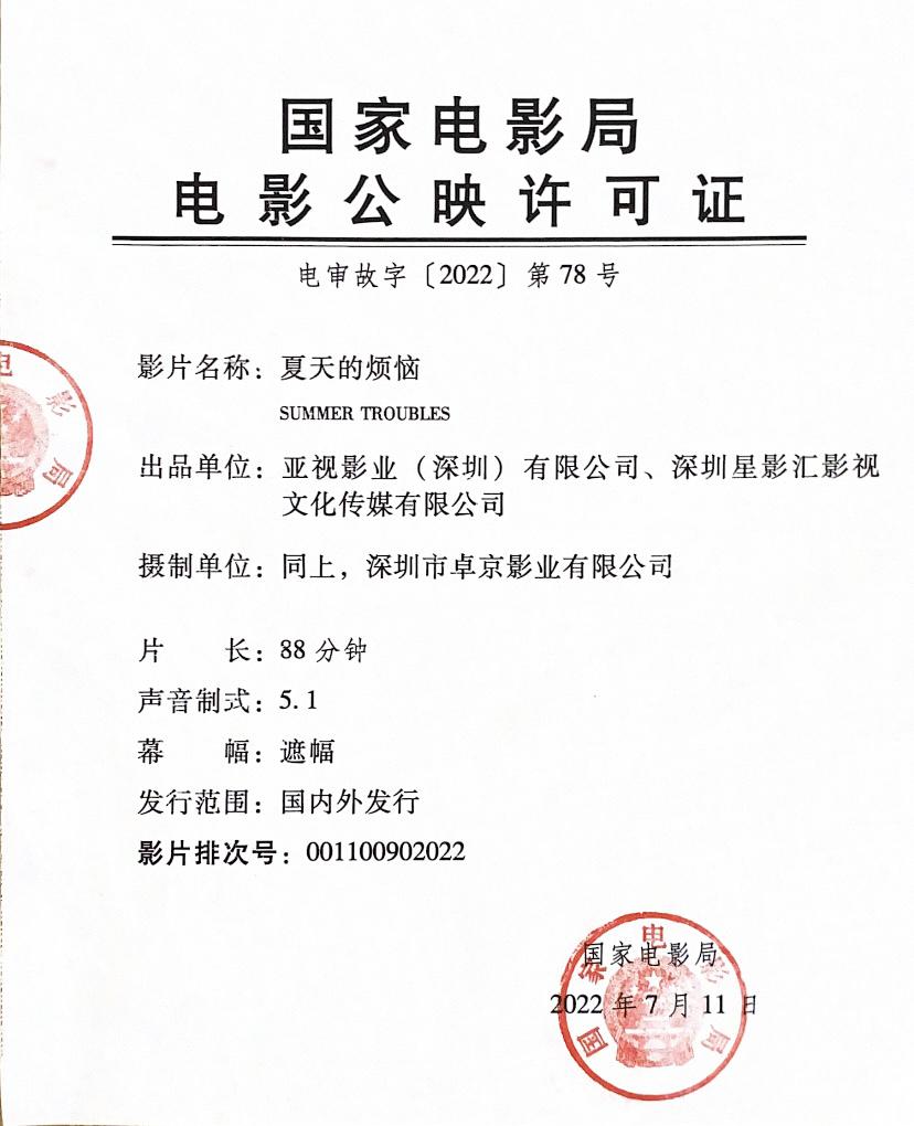 《夏天的烦恼》数字版影片发行通知