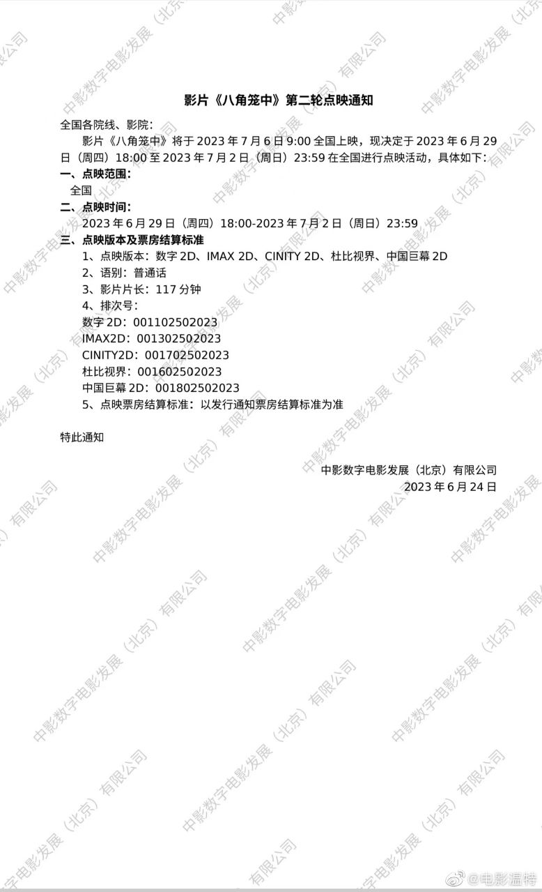 影片《八角笼中》密钥二次延期通知