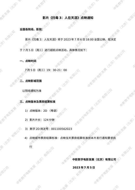 (以此版为准)影片《扫毒3:人在天涯》发行通知