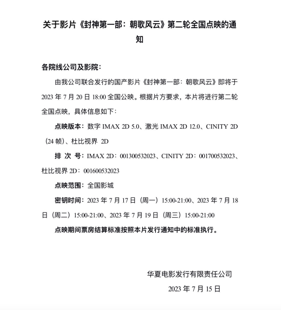《封神第一部:朝歌风云》发行通知