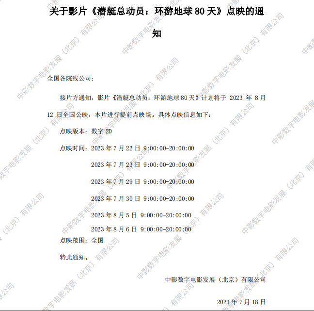 发行通知 » 《潜艇总动员:环游地球80天》点映的通知