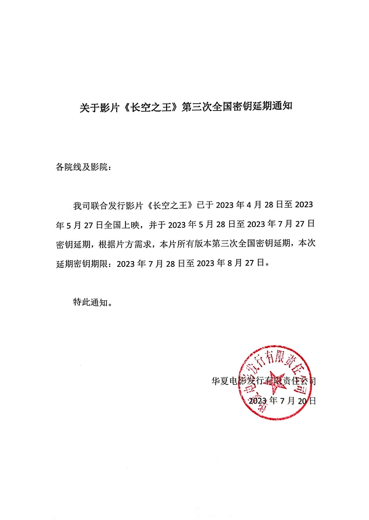 《长空之王》发行通知