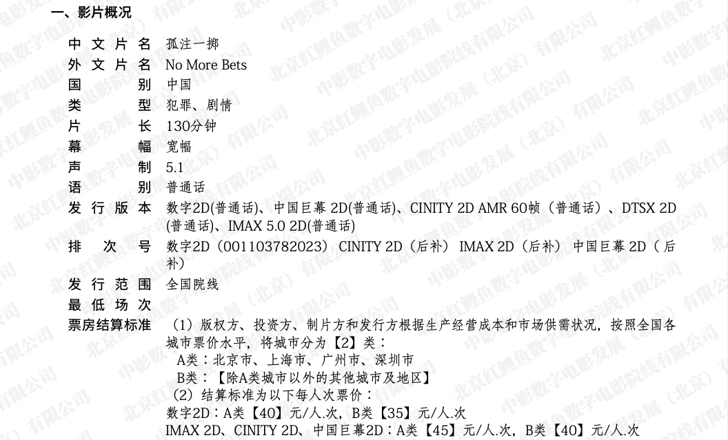 《孤注一掷》发行通知