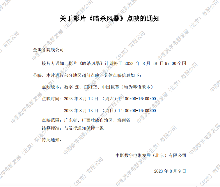 《暗杀风暴》发行通知