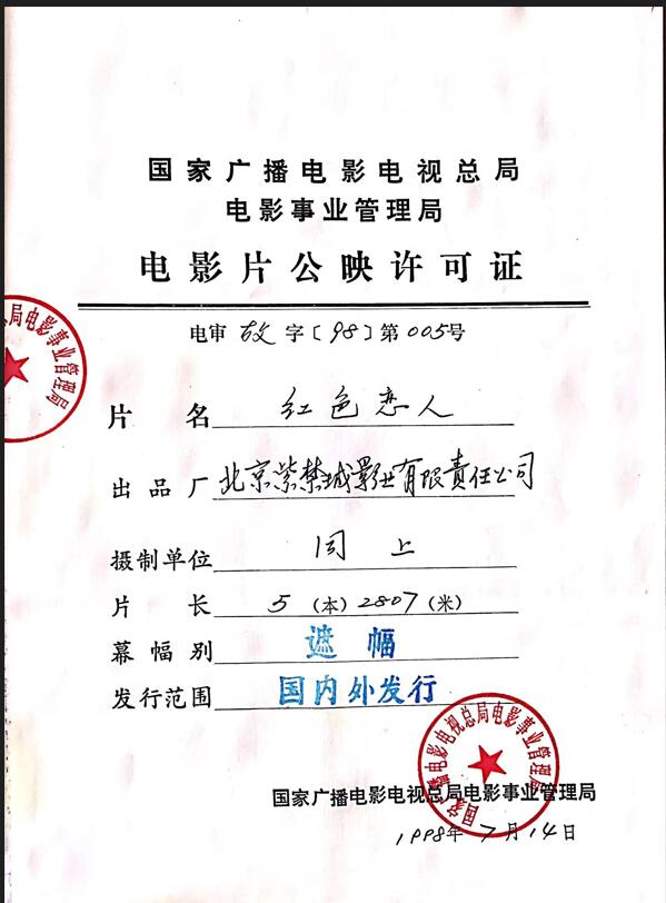 《红色恋人》全国指定影城密钥延期的通知