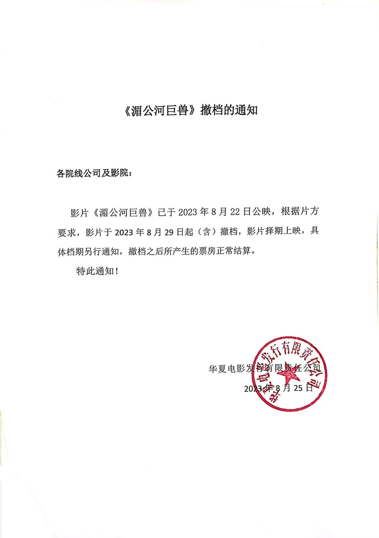 发行通知 » 《湄公河巨兽》撤档的通知