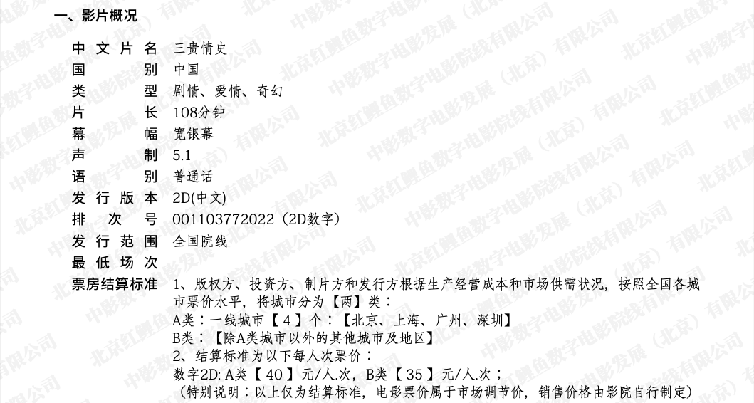 《三贵情史》发行通知