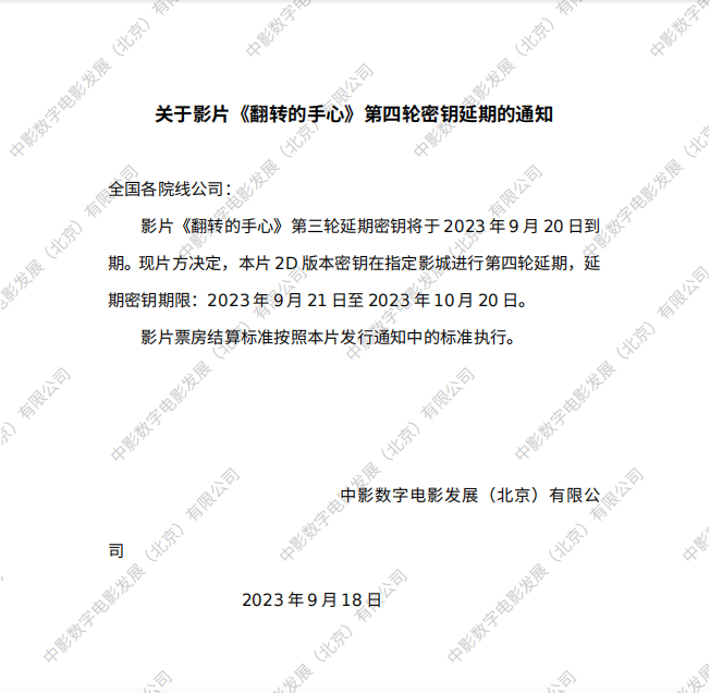 《翻转的手心》第二轮密钥延期的通知
