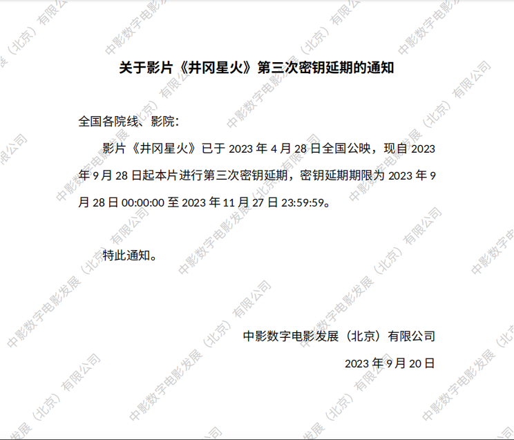 《井冈星火》第九次密钥延期的通知