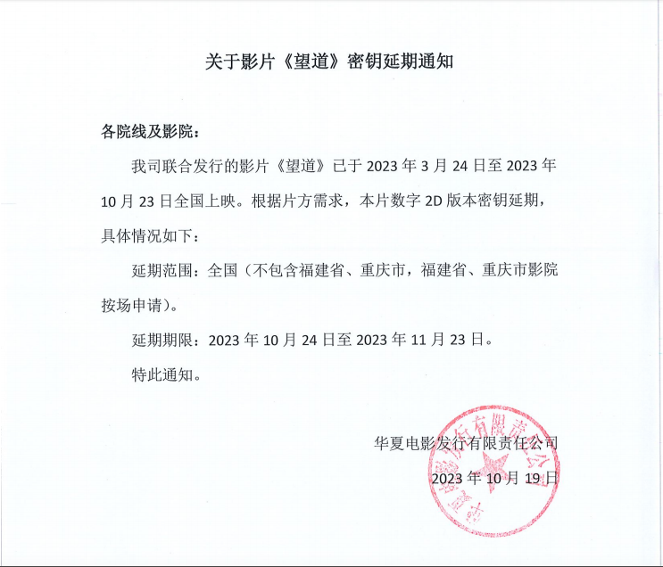 关于影片《望道》密钥延期通知