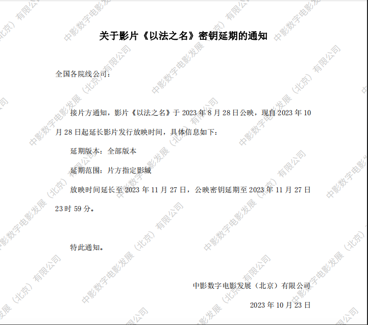 《以法之名》第七次密钥延期的通知