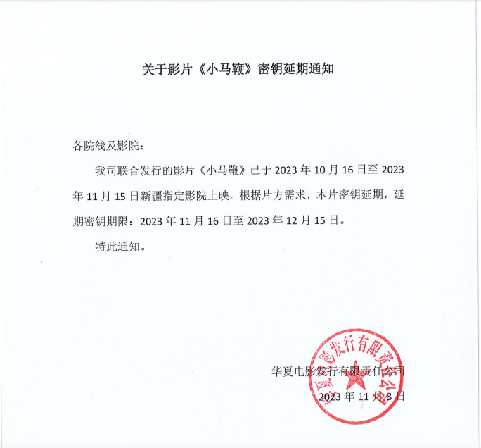 关于影片《小马鞭》密钥延期通知