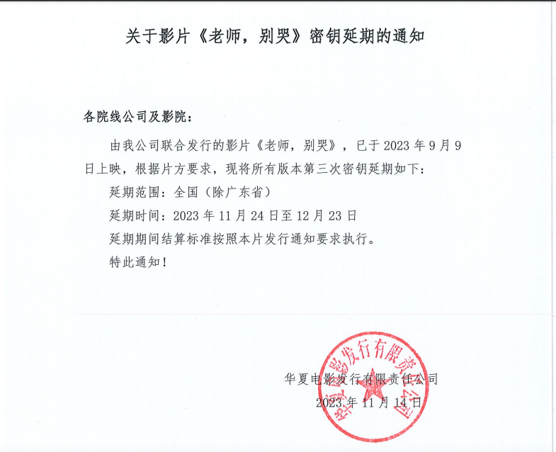 《老师,别哭》密钥延期的通知