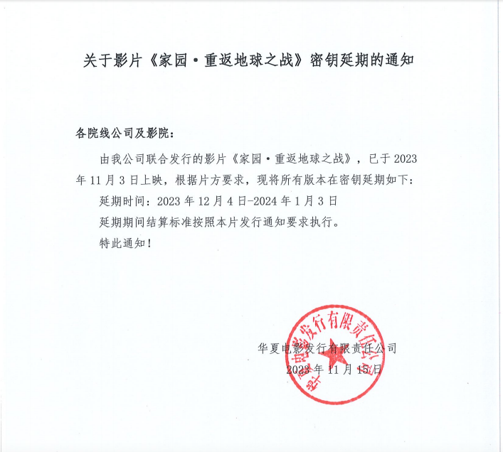 《家园·重返地球之战》发行通知