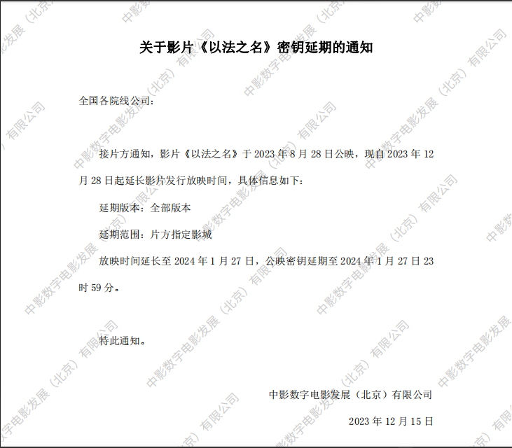 《以法之名》密钥延期的通知