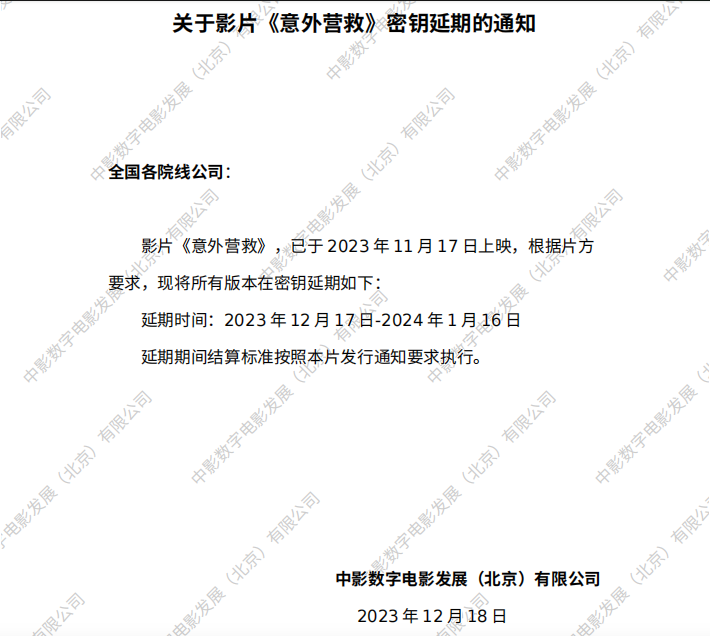 《意外营救》发行通知