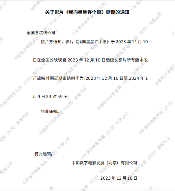 《我向星星许个愿》密钥延期的通知