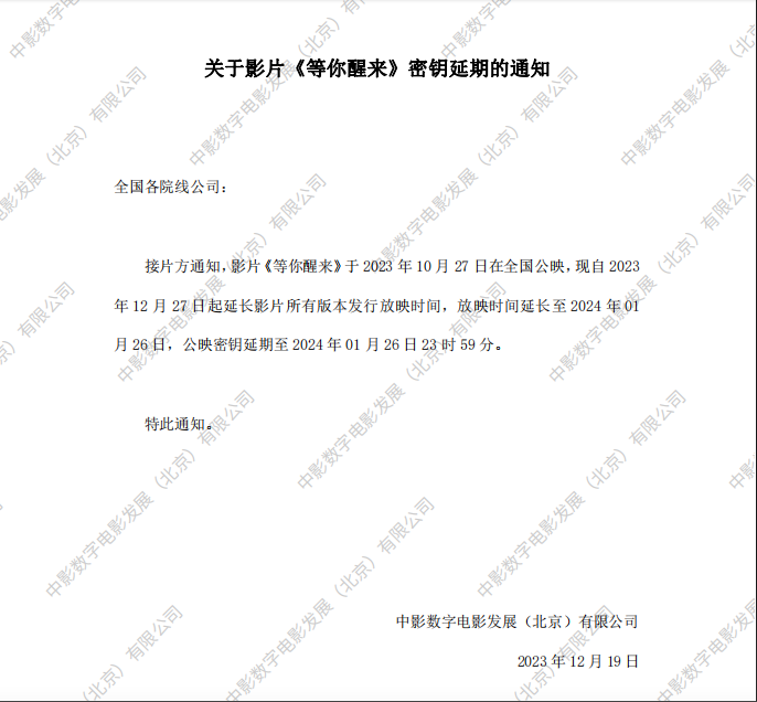 《等你醒来》密钥延期的通知