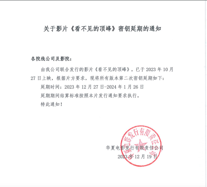 《看不见的顶峰》全国密钥延期的通知