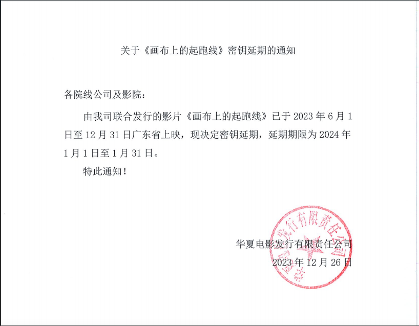 《画布上的起跑线》密钥延期的通知