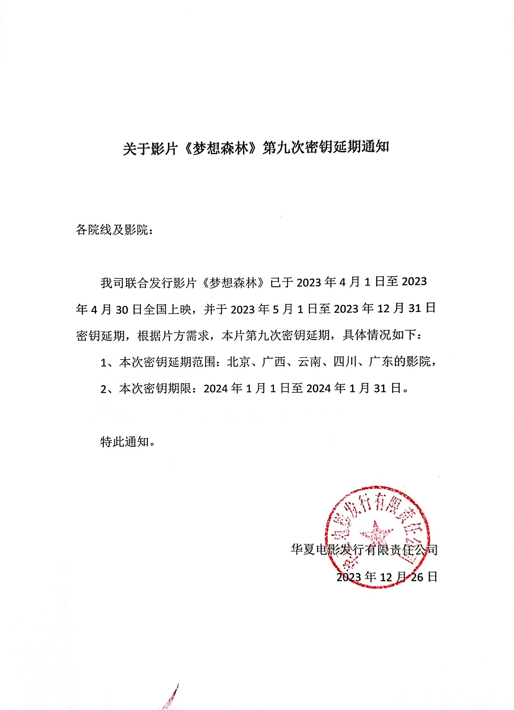《梦想森林》第二次全国密钥延期的通知