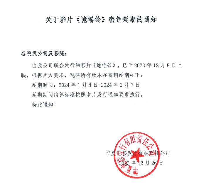 《诡摇铃》调整档期的通知