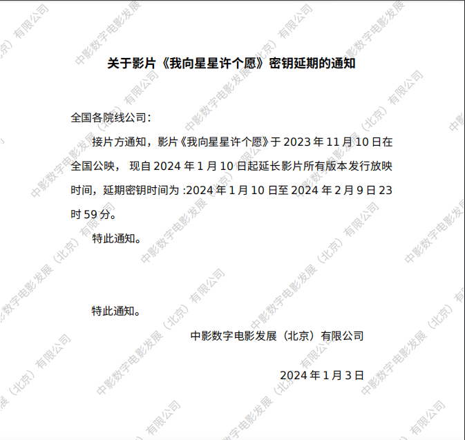 《我向星星许个愿》密钥延期的通知