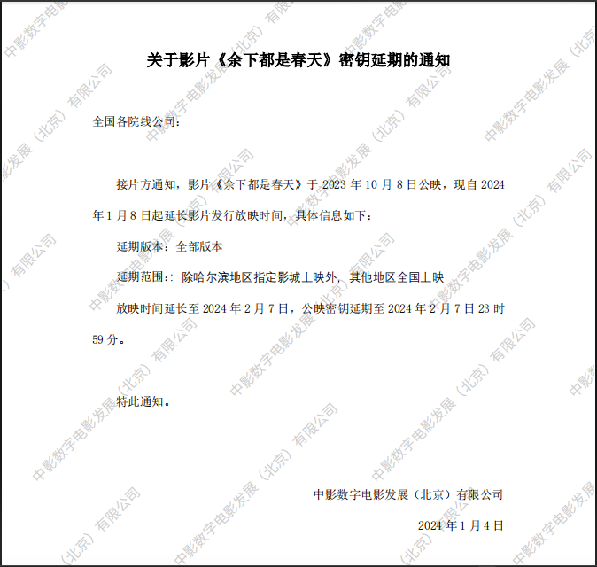 《余下都是春天》第九次密钥延期的通知