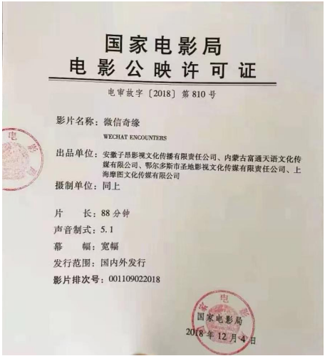 出 品:安徽子昂影视文化传播有限责任公司、内蒙古富通天语文化传媒有限公司、鄂尔多斯市圣地影视文化传媒有限责任公司、上海摩图文化传媒有限公司