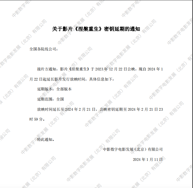 《涅槃重生》发行通知