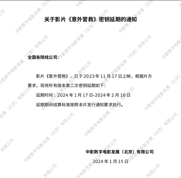 《意外营救》密钥延期的通知