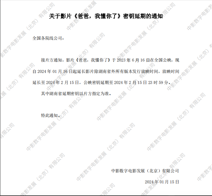《爸爸,我懂你了》第十三次密钥延期的通知