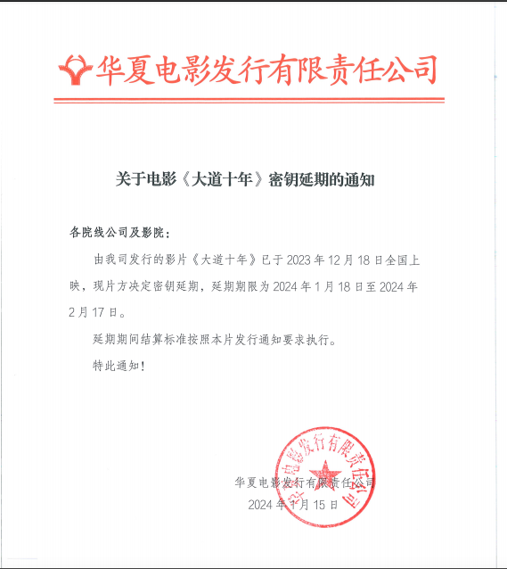 《大道十年》第七次密钥延期的通知