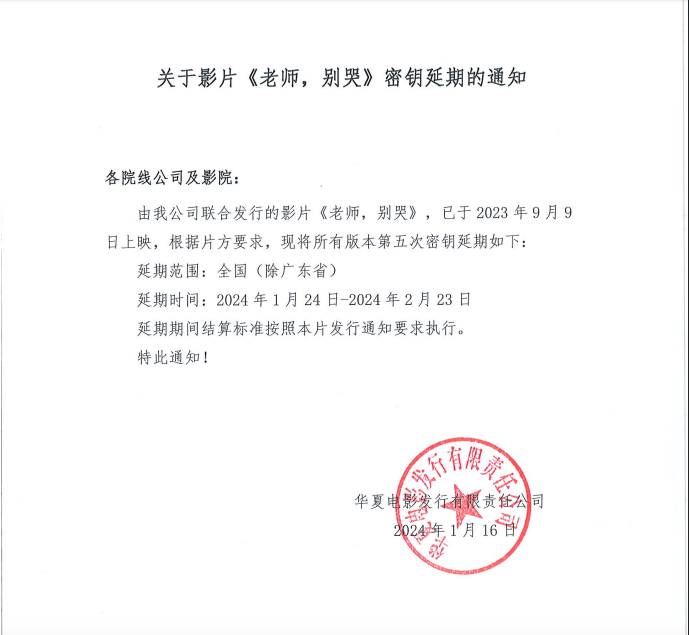《老师,别哭》密钥延期的通知