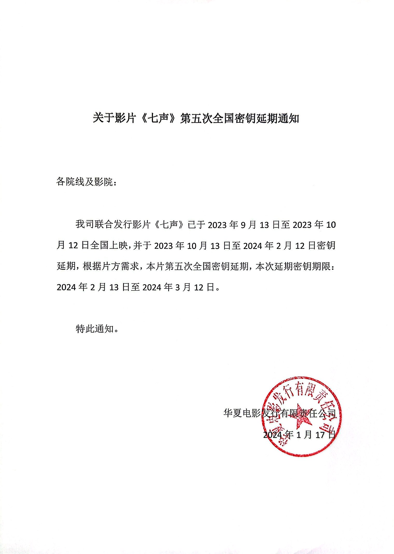 《七声》第十三次全国密钥延期的通知