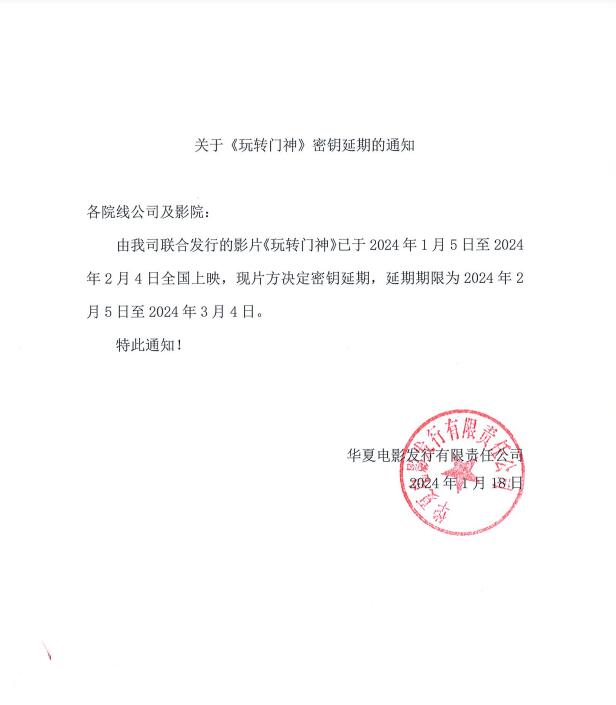 《玩转门神》第三次密钥延期的通知