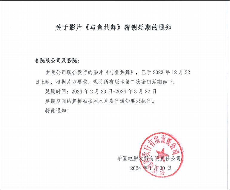 《与鱼共舞》密钥延期的通知