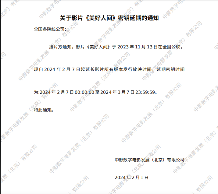 《美好人间》第六次密钥延期的通知