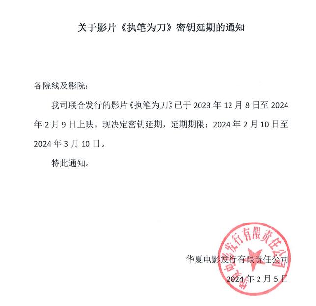 《执笔为刀》密钥延期的通知