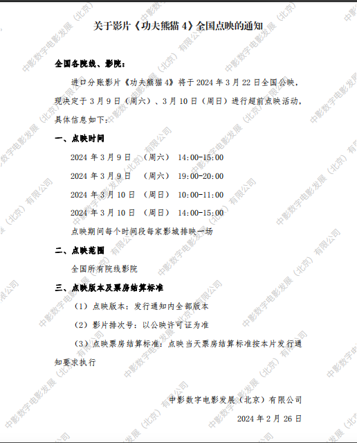 《功夫熊猫4》发行通知(延期)
