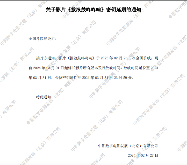 《拨浪鼓咚咚响》第三十二次密钥延期的通知