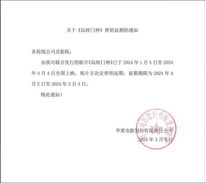 《玩转门神》第三次密钥延期的通知