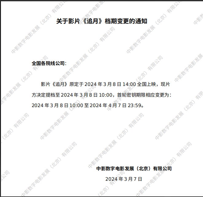 《追月》全国密钥延期的通知