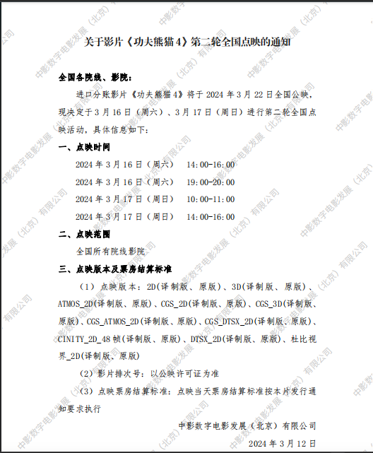 《功夫熊猫4》发行通知(延期)